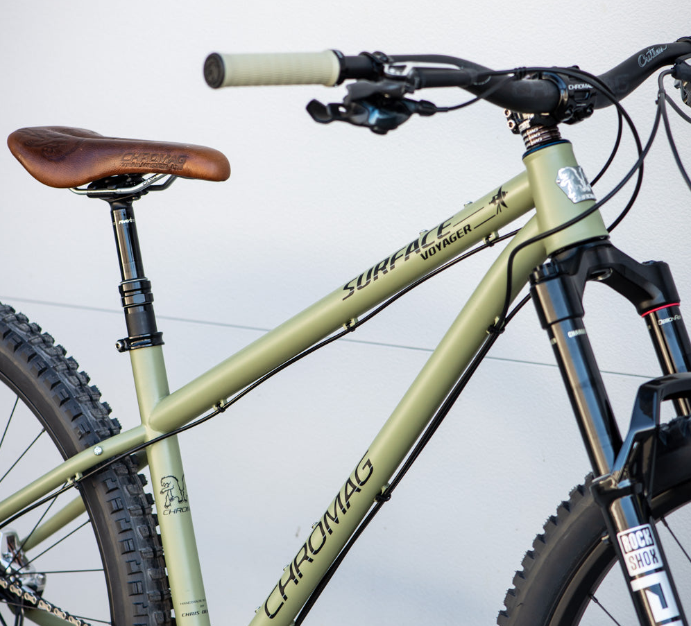 Built to travel far and wide the Surface Voyager is packed full of versatility. It features long distance friendly geometry, lots of bosses for attaching things to, and a straight toptube leaves more room for frame bags and water bottles. When its time to hit some proper singletrack, the Surface surface shines with a design that doesn't compromise when it comes to trail agility!
